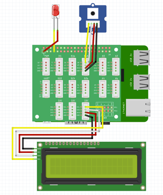 キットでは、I2Cポートの1つをLCDで、GPIOの1つをLEDで使用しています。